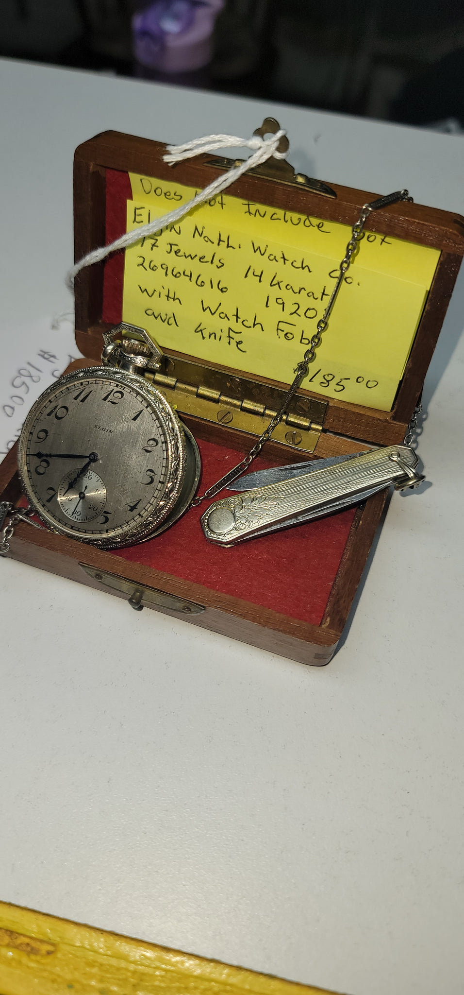 1920's with watch fob and knife with chain.