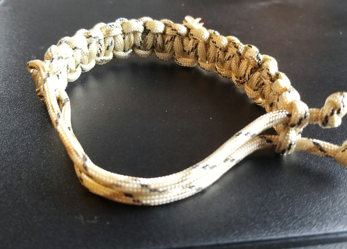 This is handmade with love paracord ajustable bracelet with tan monkey button.