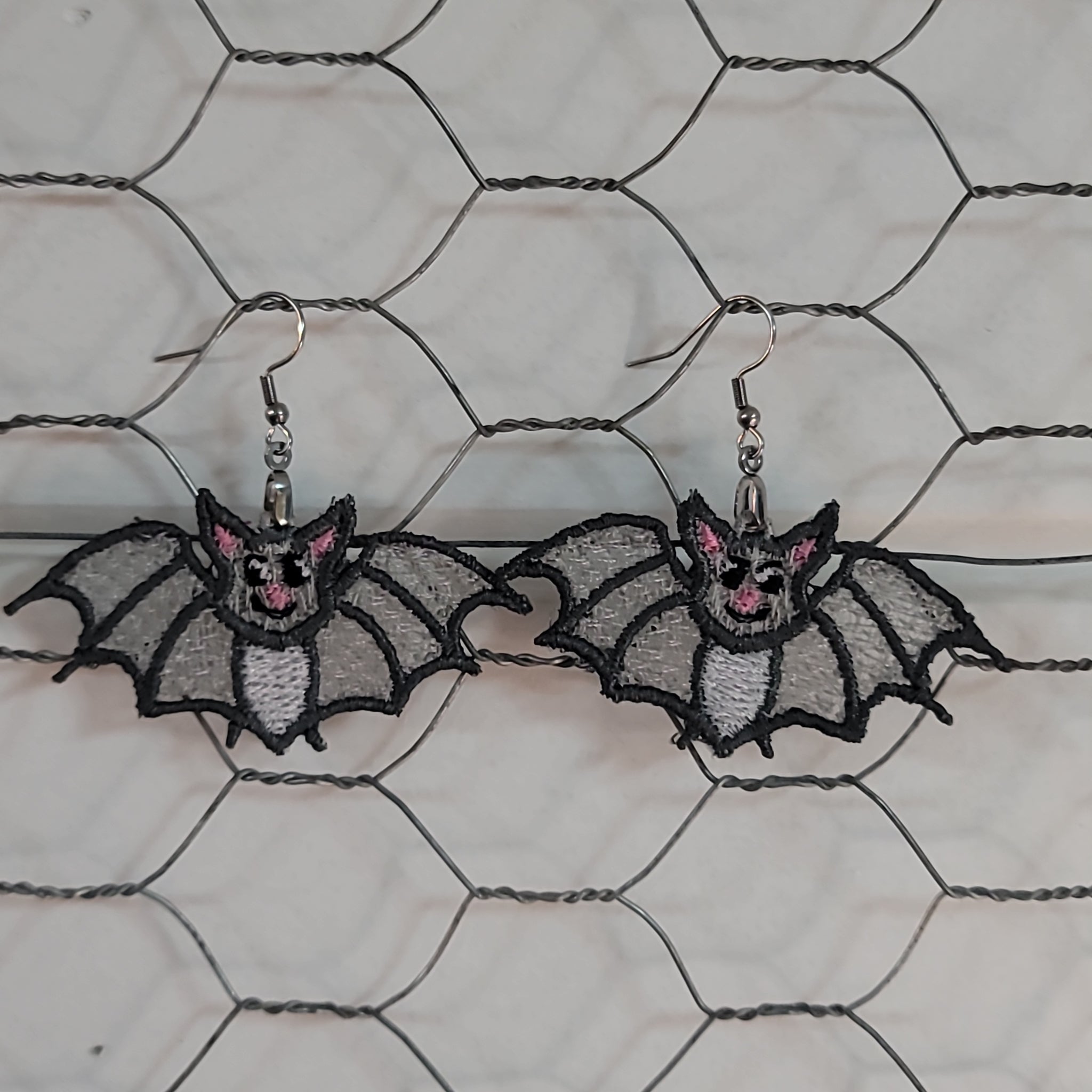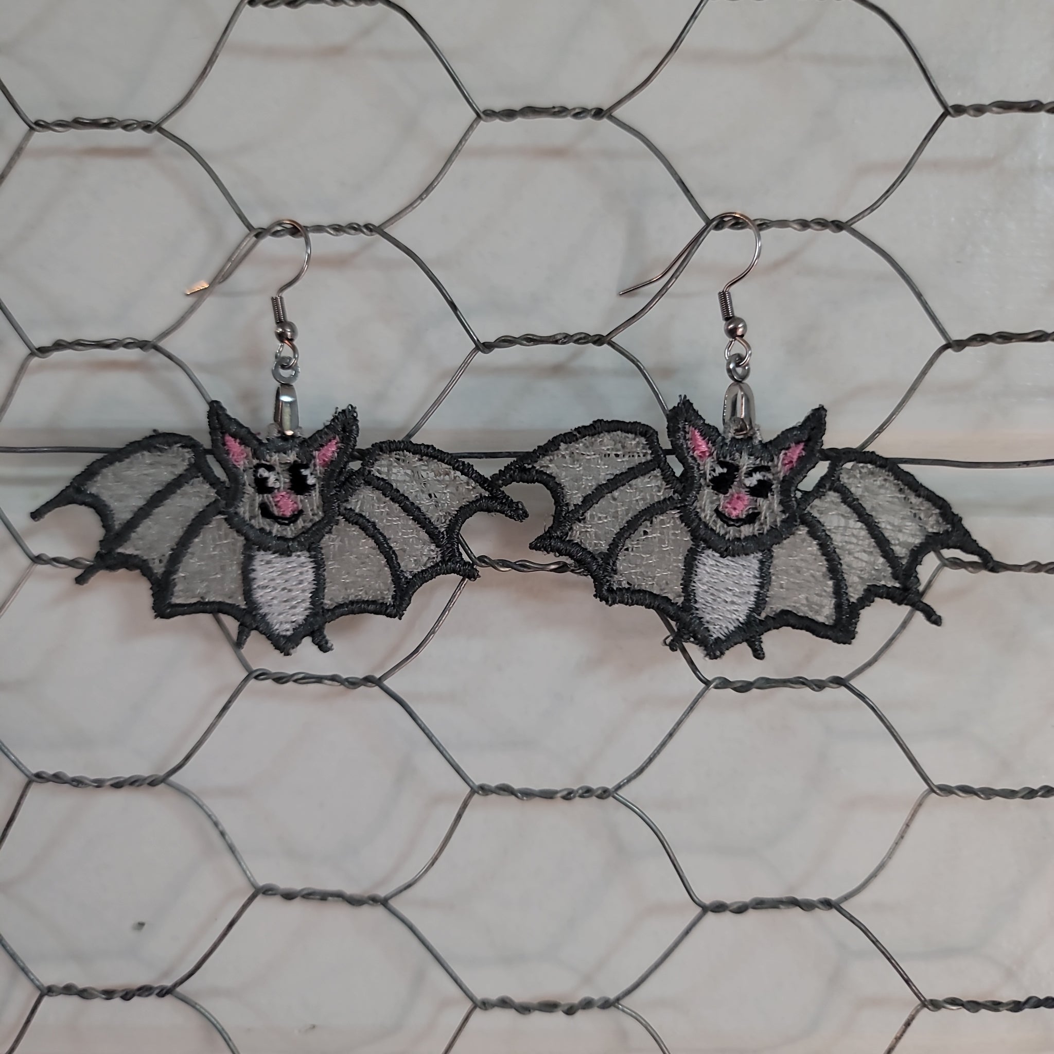 • Load image into Gallery viewer, Gray lace Bat earrings