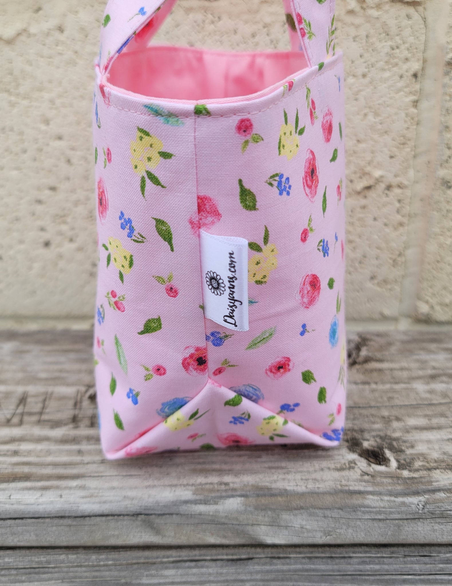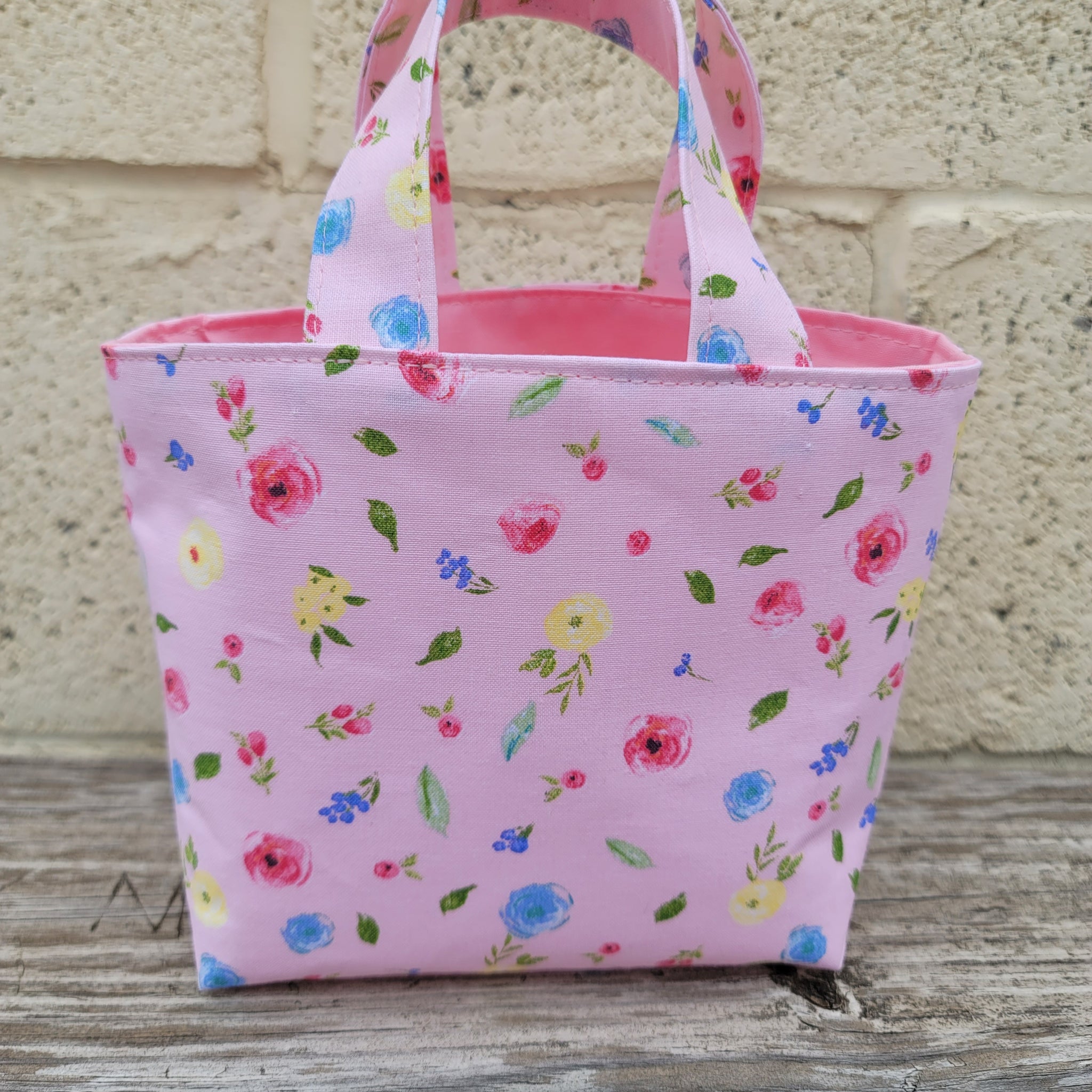 Beautiful pink floral buds   mini  fabric gift bag are fully lined, strong and durable with handy carry handles.