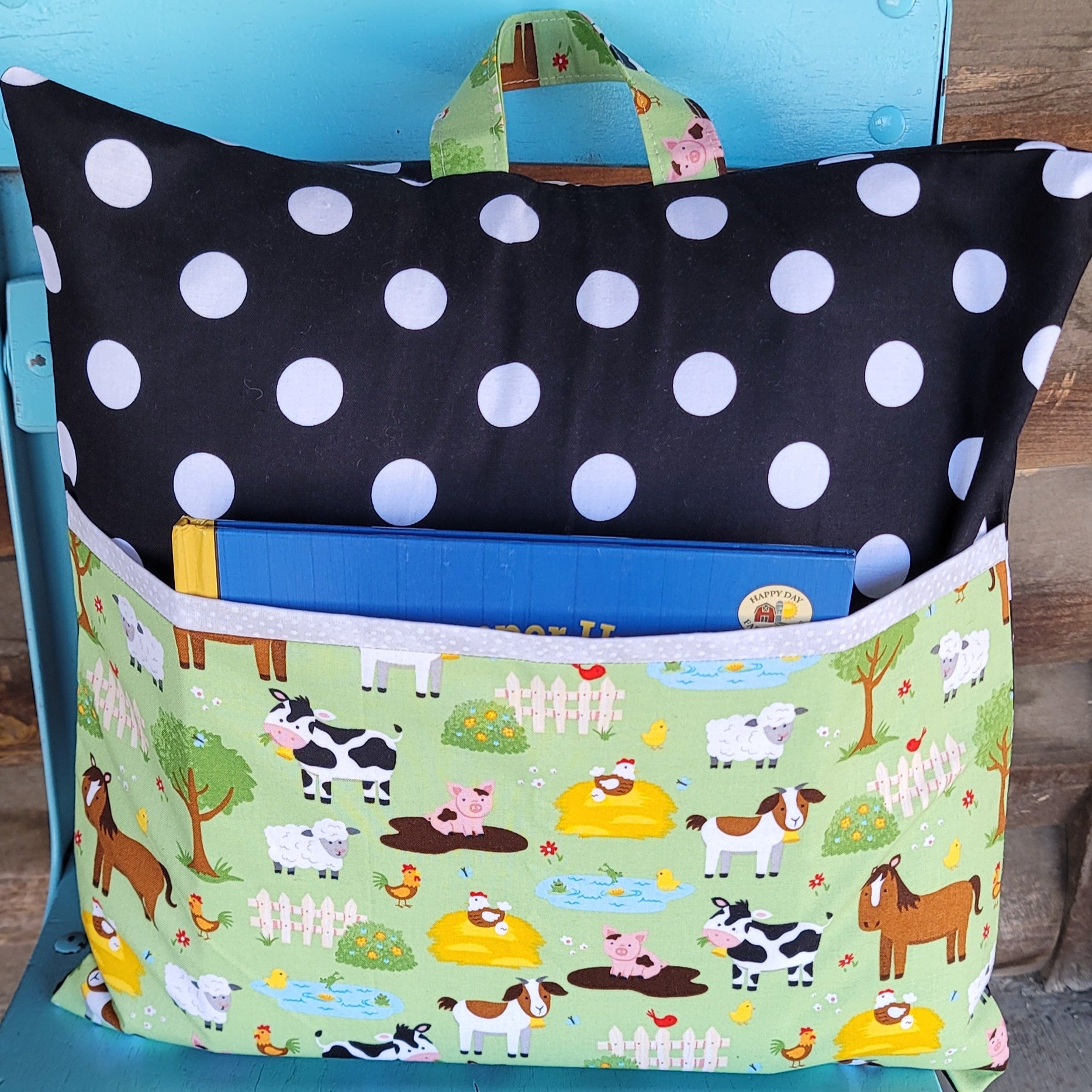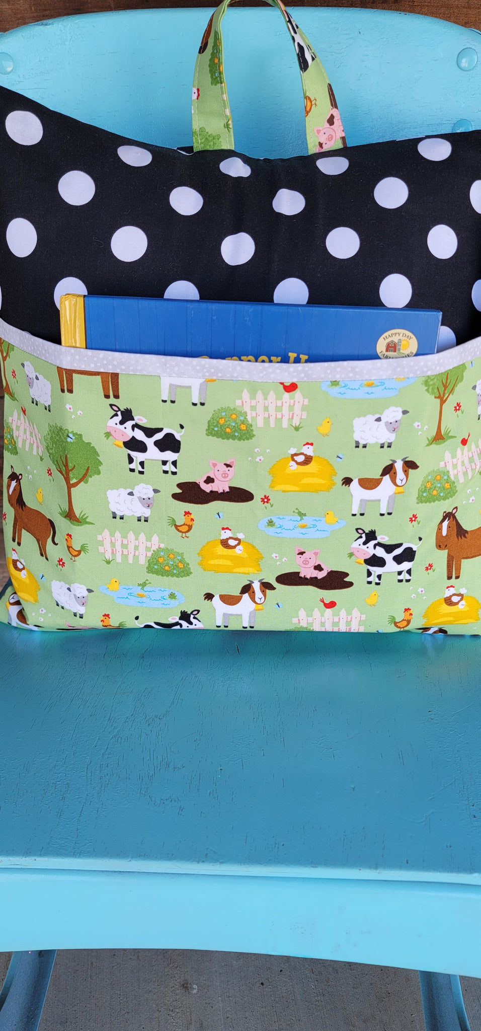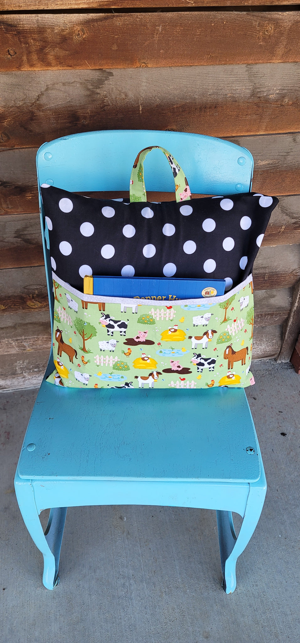 This reading pillow features a front pocket which can be used to carry books, notebooks, markers, crayons or anything else you may need when traveling, camping or just cuddling up with a good book. It features decorative pocket and edge of the cover to add a more finished look and also has an optional handle added at the top for carrying or hanging up when not in use. There is an envelope style opening on the back of the cover so it can be easily removed for washing. This would make a great unique gift for the hard to buy for person. NOTE: ITEMS SHOWN IN THE POCKET ARE FOR DISPLAY PURPOSES ONLY. THEY ARE NOT INCLUDED WITH THE PURCHASE OF THE PILLOW.
