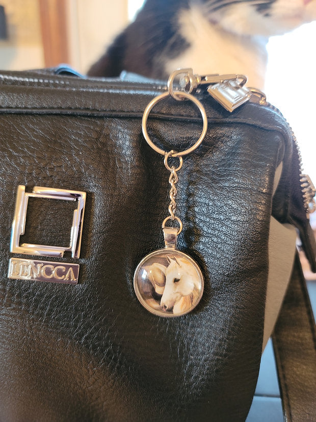 • Load image into Gallery viewer, White Horse Keychain Cabochon